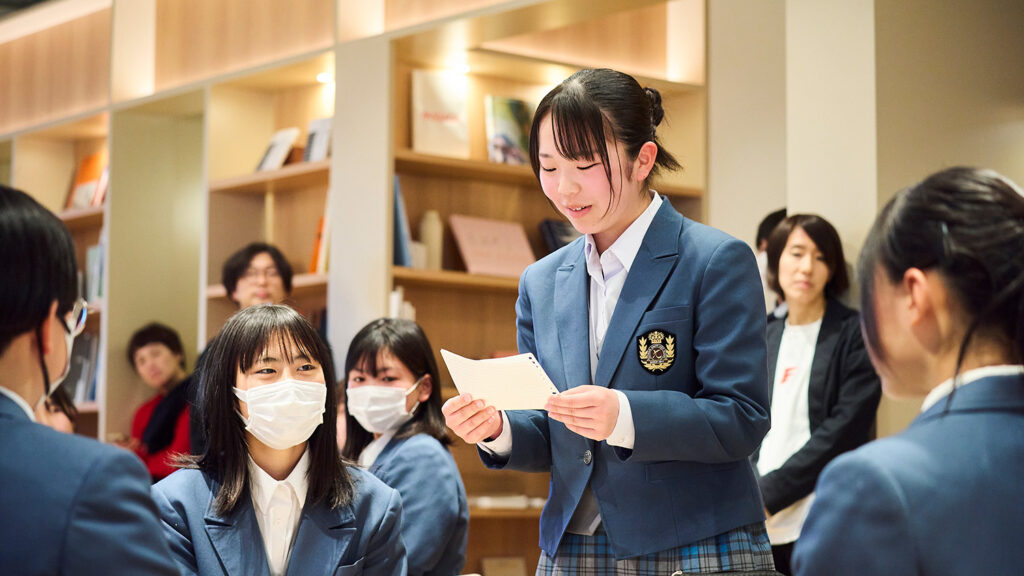 スポーツを止めるな、そして1252プロジェクトの活動紹介ののち、生理の課題に関するアスリートの体験談をシェアする時間が設けられました。角田さんのアスリートとしてのキャリアと現役時代の生理の悩みに生徒たちは真剣に耳を傾けていました。