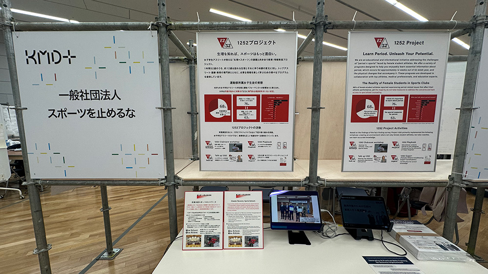 1252プロジェクトでは、当社団が行った「運動部所属女子生徒の実態調査」から見えた、生理とスポーツに関する課題をパネルで展示しました。
